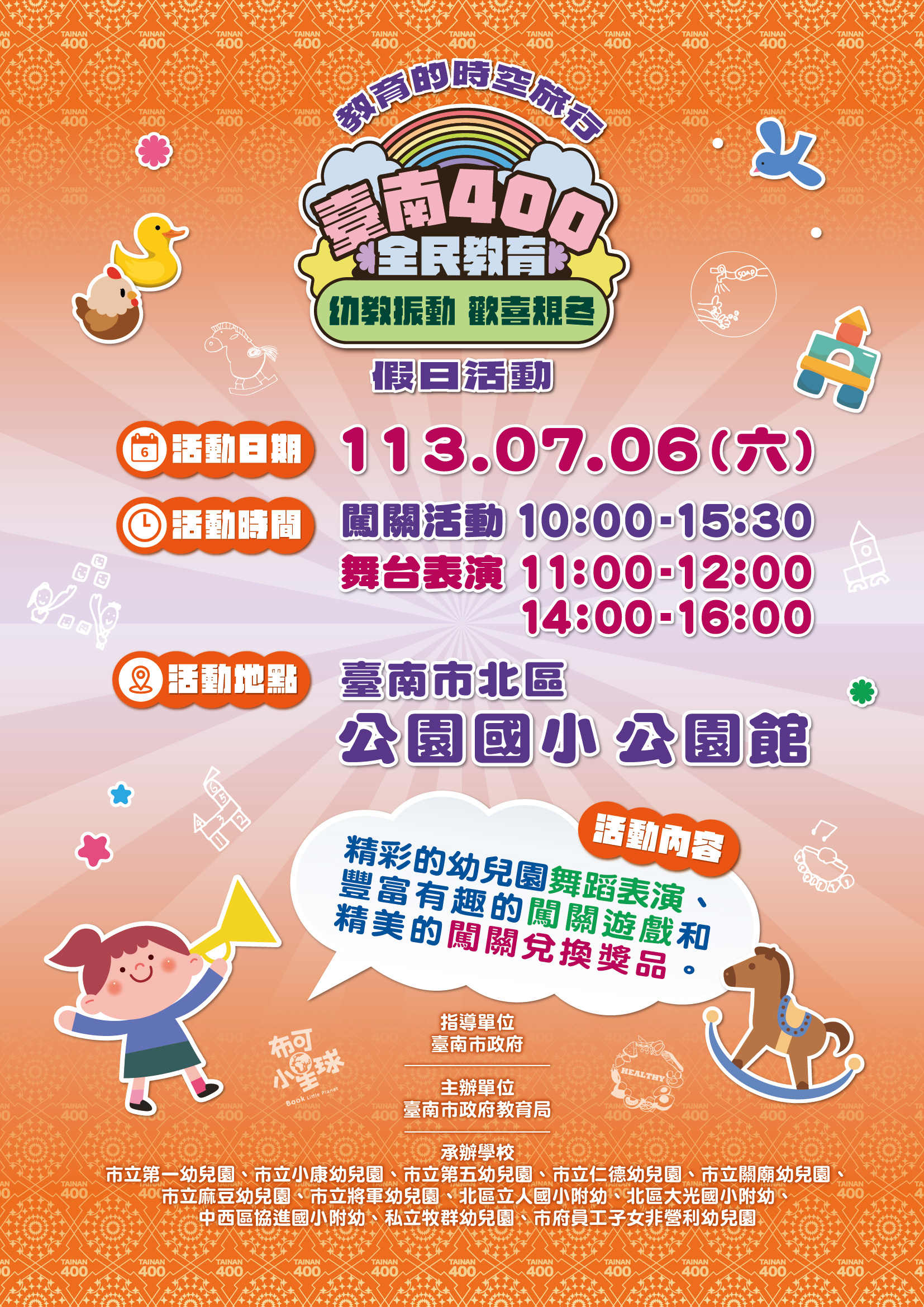 現場有10所幼兒園童趣可愛的舞台表演,以及8個闖關活動攤位,讓親子體驗古早時代台灣囡仔的趣味。